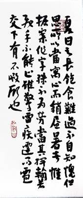 而常习之,继后又学赵、褚、孙等名贴。其书法作品追求遒劲刚毅而又秀美,