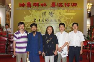 中国书道协会成员参加活动合影留念(左起:黄风东、李真智道长、周国民、谢朝阳、黄培中)