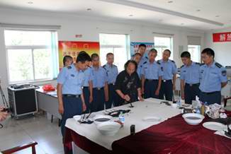 谢朝阳会长与部队官兵进行书法交流