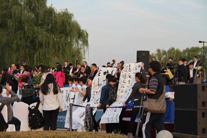 中国书道协会应邀参加由中央数字电视书画频道、中国移动北京公司、中国国家交响乐团联合举办的中国森林交响音乐会,在北京国际会议中心举行。此活动是音乐与书画之美的有机结合,场面宏大,环境优美。到会者深临其境,感受文化之大餐,乐哉乐哉。