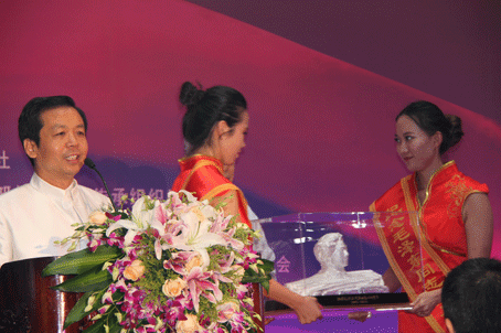 李讷的爱人接受大会组委会赠送礼品