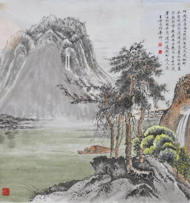 王世昌山水作品有大化之境,外师造化,中得心源。其作品造型法古融今,构图缜密,用笔奇巧,意境有神,而又不乏民间美术的拙朴之风,寄托气韵生动心灵,具有独到的美学尺度和思想内涵。代表作:《于樵图》《老子出关图》《春风江畔》《农家乐》《深山旅行》等。